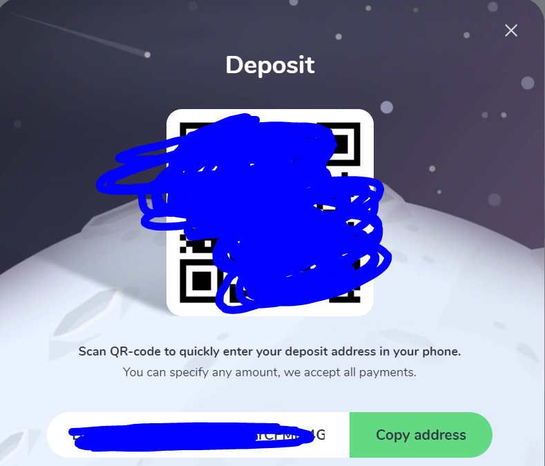 Deposit을 누리시면 QR-code와 지갑주소가 나와있습니다.