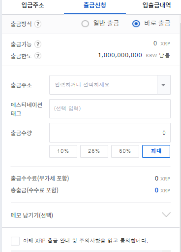일반 출금시 1xrp(1,300)의 수수료가 다소 비쌀수 있지만 안전하게 출금하시기 바랍니다.
