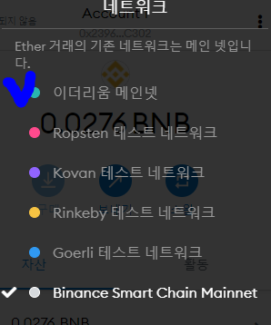 메타지갑을 오픈하신후 이더리움 or BSC(바이낸스 스마트 체인) 확인하신후